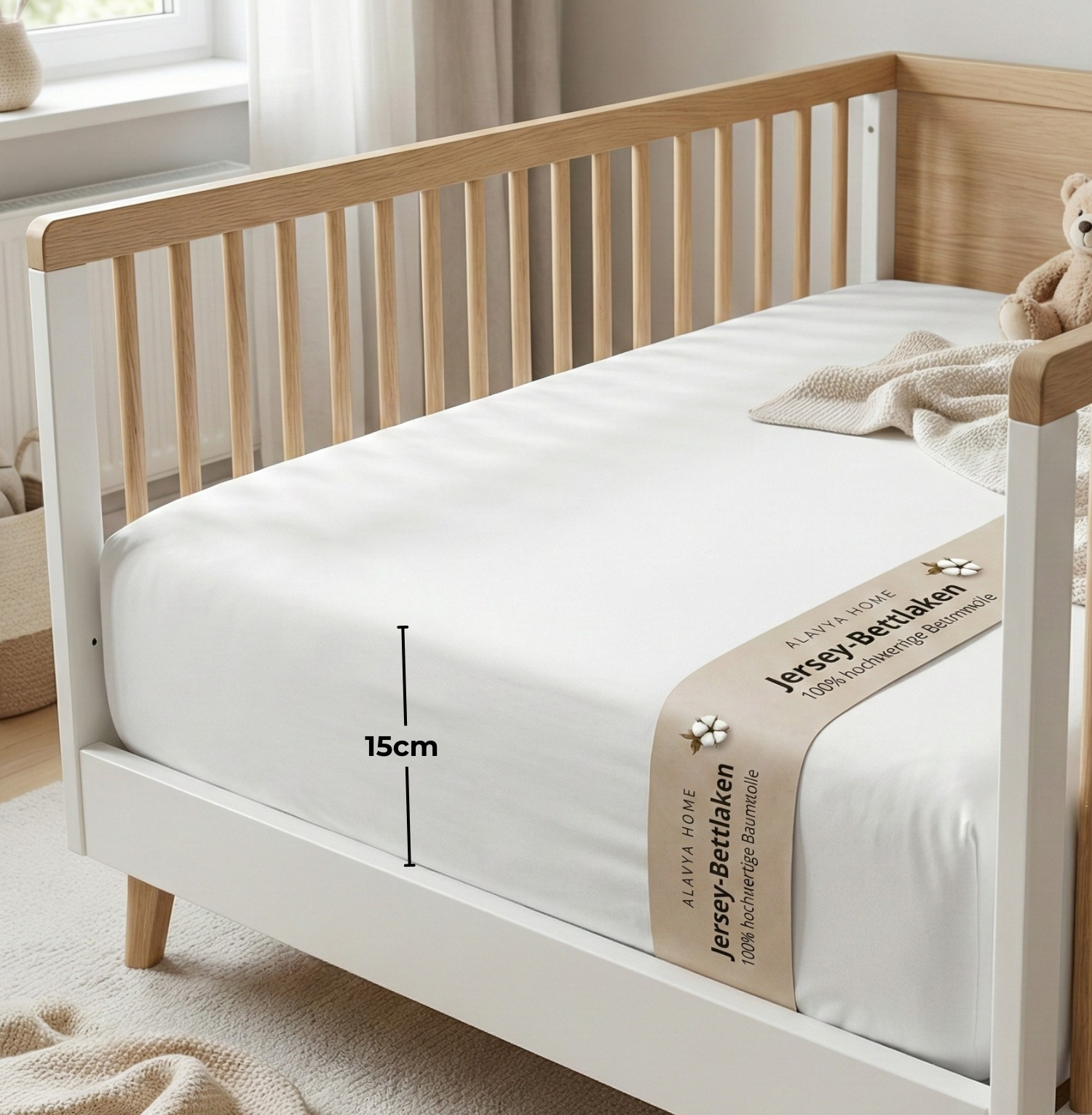 Genießen Sie höchsten Schlafkomfort mit unseren Jersey-Spannbettlaken aus 100% hochwertiger Baumwolle. Die atmungsaktiven und angenehm weichen Laken passen sich dank des elastischen Rundumgummizugs individuell Ihrer Matratze an, und sorgen so für einen festen Sitz und erholsamen Schlaf. Unsere Alavya Home Kinder-Spannbettlaken wurden speziell für Kindermatratzen entwickelt, um höchsten Ansprüchen an Qualität und Nachhaltigkeit gerecht zu werden. Passend für alle Kinder- und Baby-Matratzen mit einer Steghöhe bis zu 15 cm, bieten sie eine optimale Passform und eine angenehme Schlafumgebung. Die geprüfte Qualität unserer Spannbettlaken ist durch das OEKO-TEX Standard 100 Zertifikat bestätigt. Alle unsere Produkte sind frei von Chemikalien und giftigen Inhaltsstoffen. Die bei der Herstellung verwendeten Rohstoffe sind von höchster Qualität und garantieren Langlebigkeit, Komfort und Sicherheit für Ihre Liebsten.