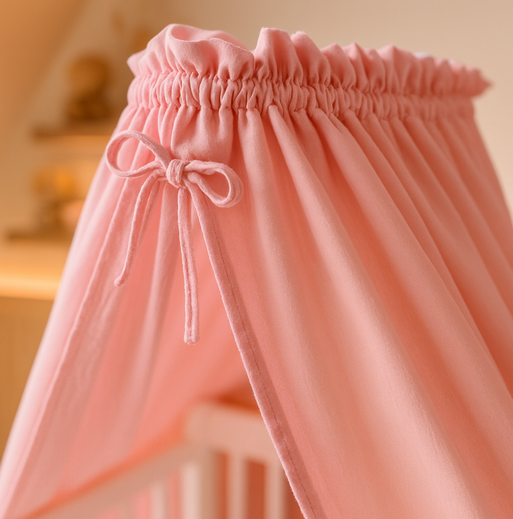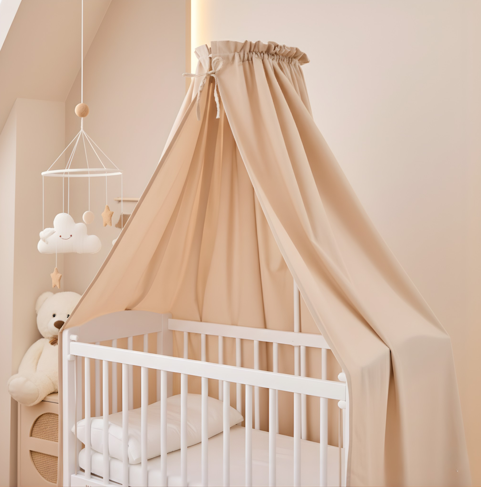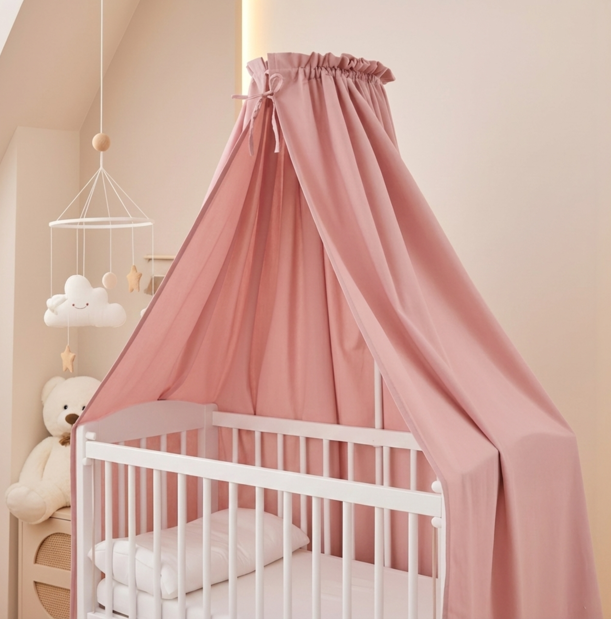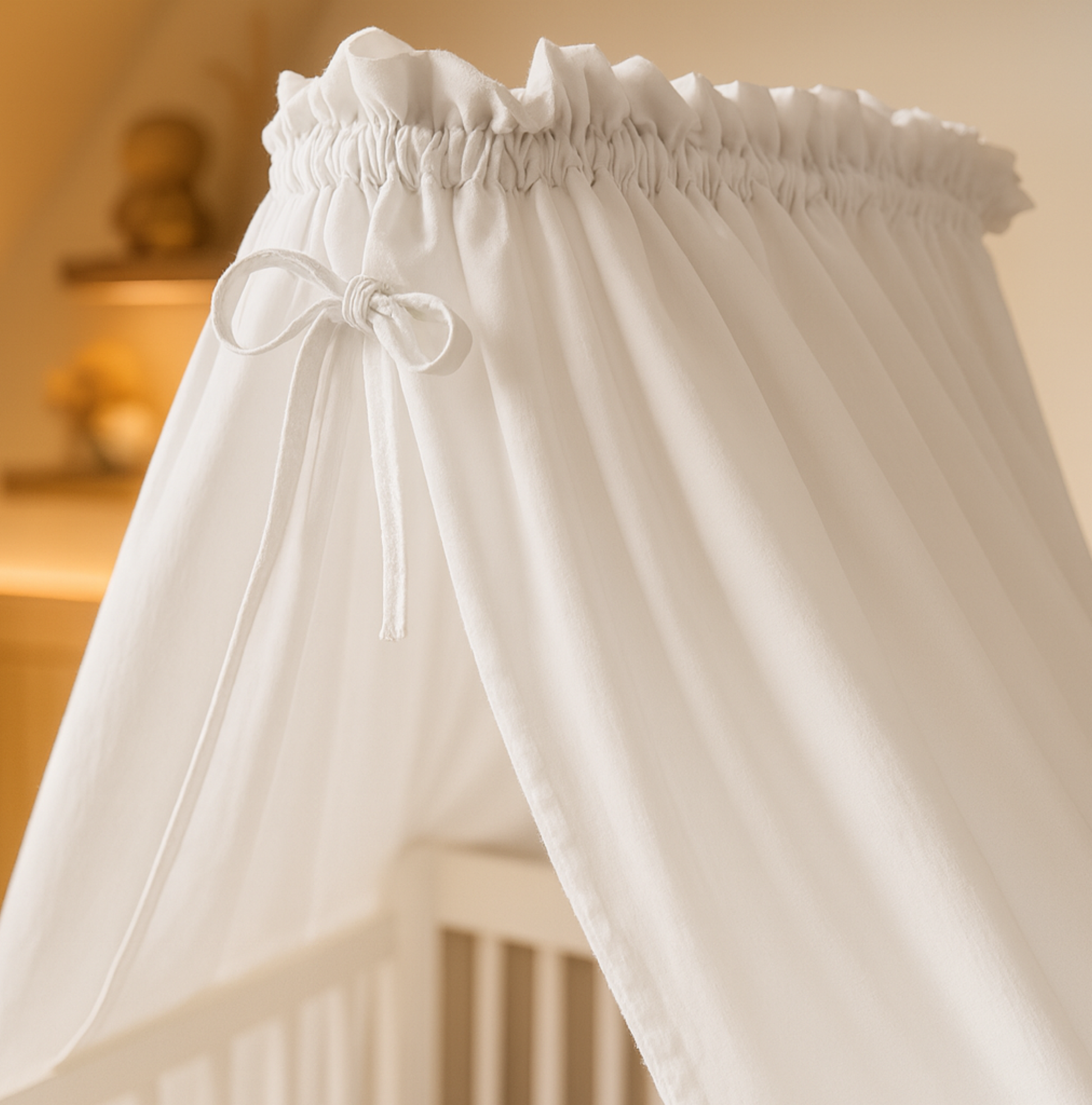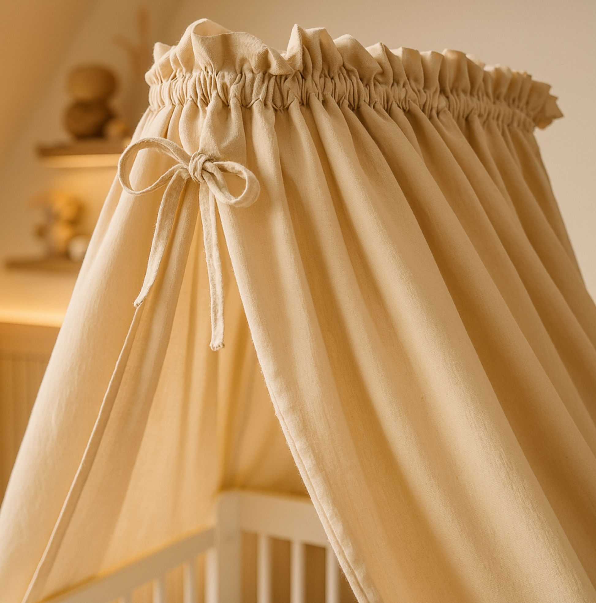 Entdecken Sie unseren zauberhaften Betthimmel, der jedes Babybett in eine gemütliche und behütete Wohlfühloase verwandelt. Unser Betthimmel ist nicht nur ein optisches Highlight, sondern bietet auch zahlreiche praktische Vorteile, die das Schlafumfeld Ihres Babys verbessern. Gefertigt aus 100% zertifizierter Bio-Baumwolle, ist der Betthimmel weich, hautfreundlich und umweltbewusst. Die atmungsaktive und luftdurchlässige Struktur des Stoffs sorgt dafür, dass die Luft zirkulieren kann und ein angenehmes Schlafklima entsteht.
