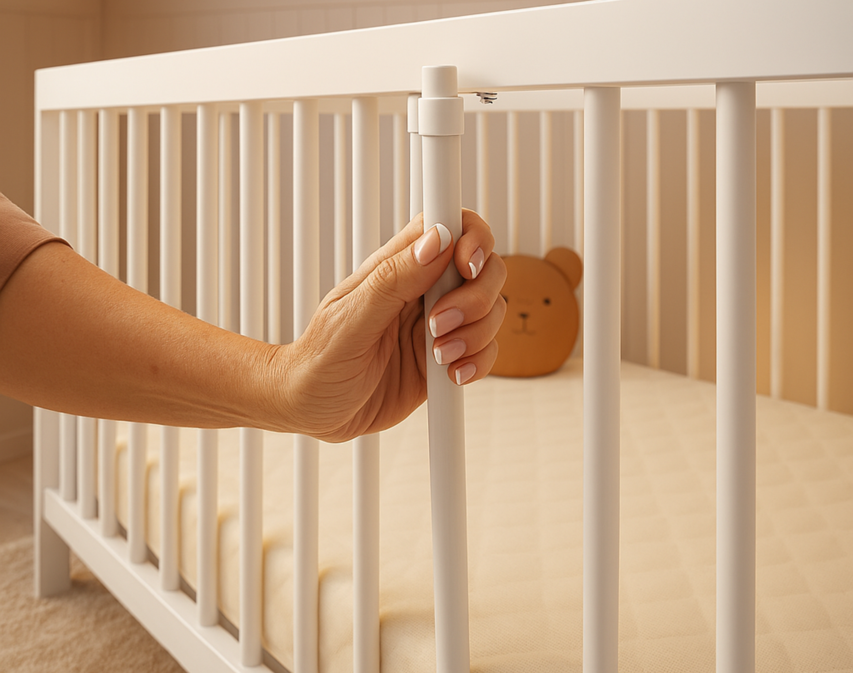 Ob Neugeborenes oder Kleinkind – das NALA Babybett wächst mit. Der Lattenrost ist in drei Höhen verstellbar (18,5, 33 und 48 cm), sodass sich das Bett optimal an die Entwicklungsstufe Ihres Kindes anpassen lässt. Herausnehmbare Schlupfsprossen ermöglichen älteren Babys ein sicheres Ein- und Aussteigen – ganz ohne elterliche Hilfe.