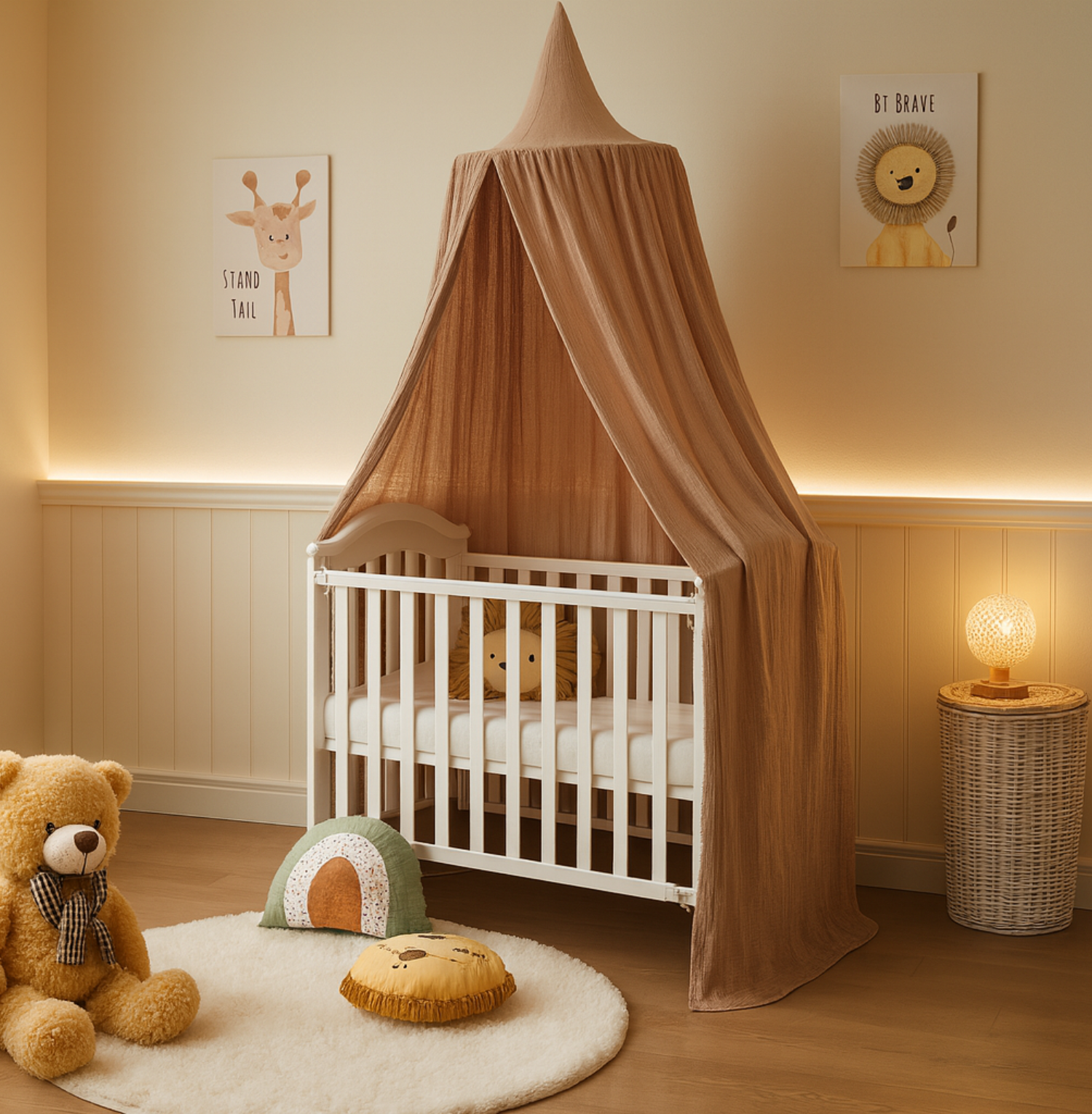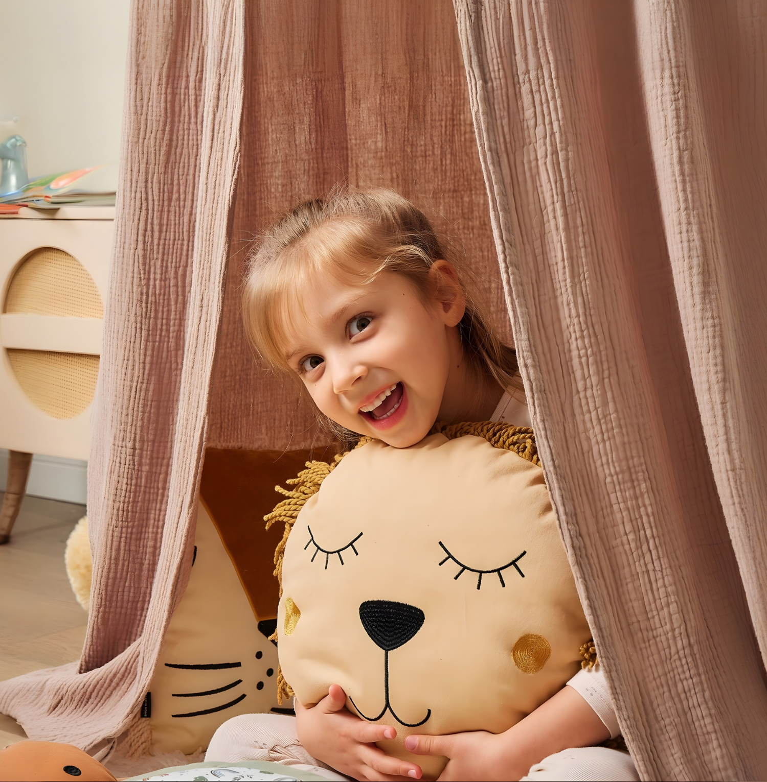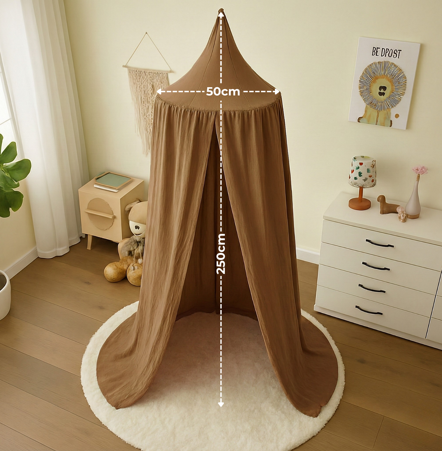 Die einzigartige Musselin-Textur verleiht jedem Kinderzimmer eine gemütliche und stilvolle Note. Ob als Lese- und Spielecke, Versteck oder einfach zur Verschönerung – dieser Baldachin schafft ein magisches Raumgefühl für Ihr Kind. Dank seiner hypoallergenen Eigenschaften ist das zertifizierte Material besonders sanft zur empfindlichen Kinderhaut. Die hochwertige Verarbeitung garantiert eine lange Nutzungsdauer und unbeschwerten Spaß.