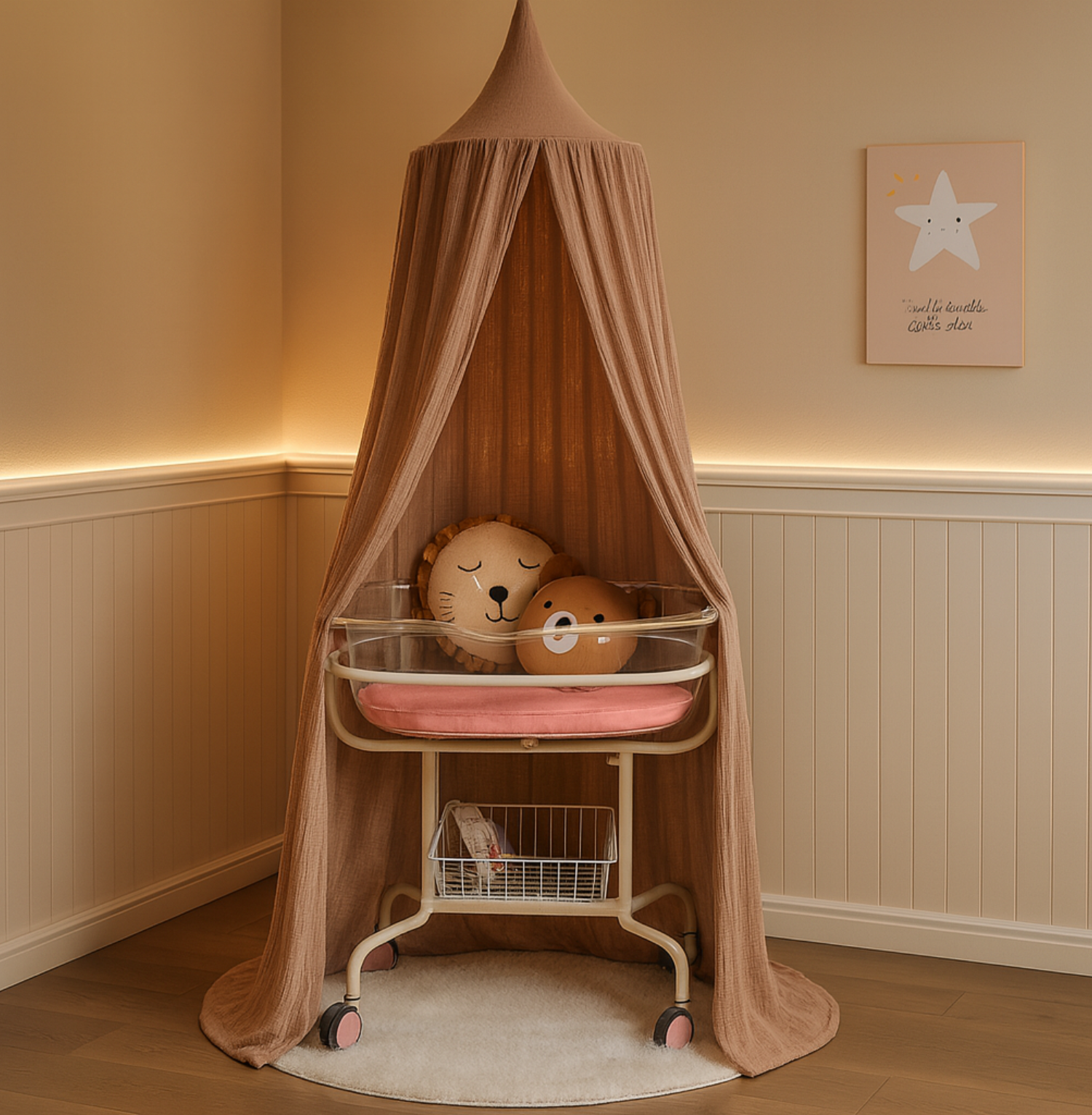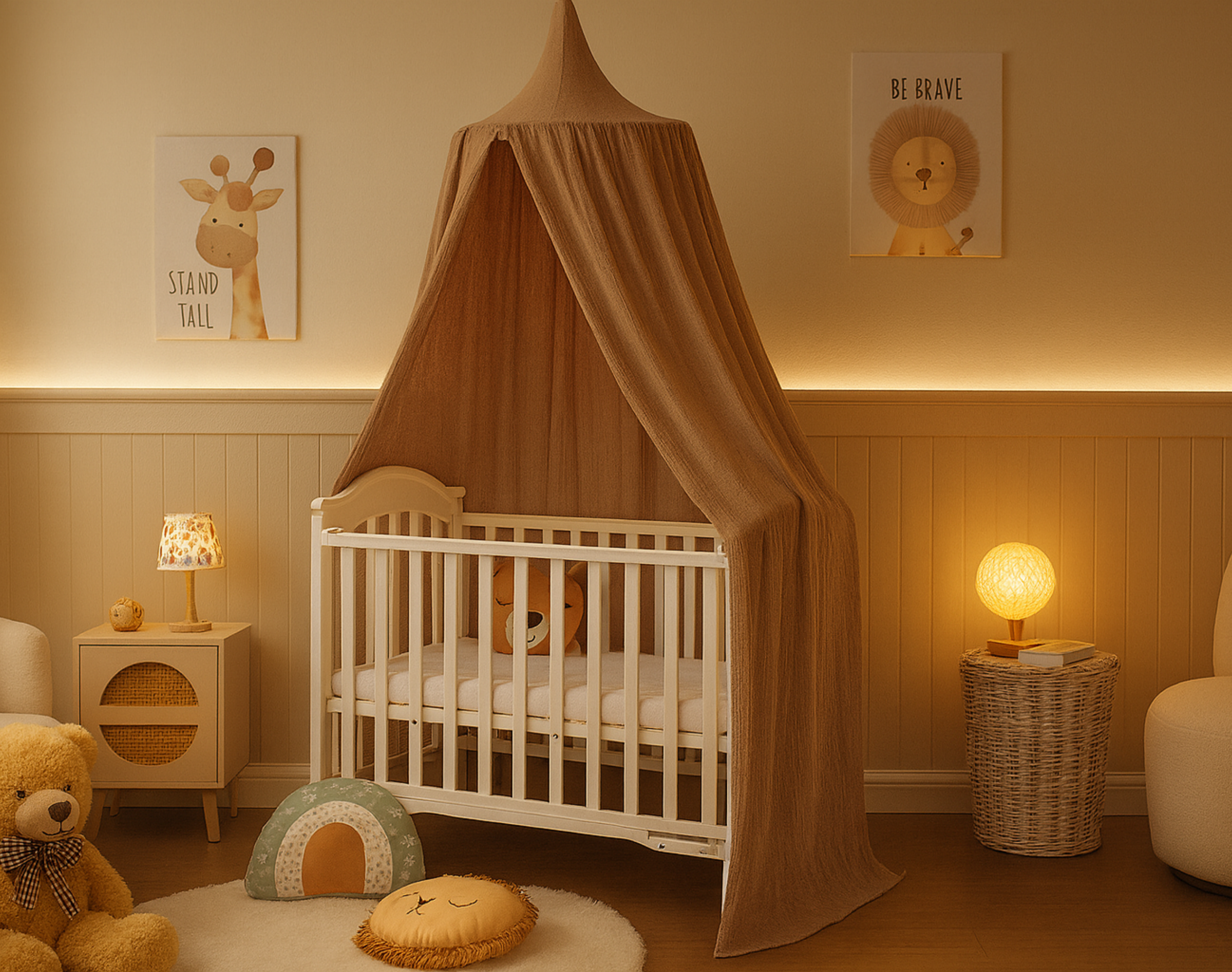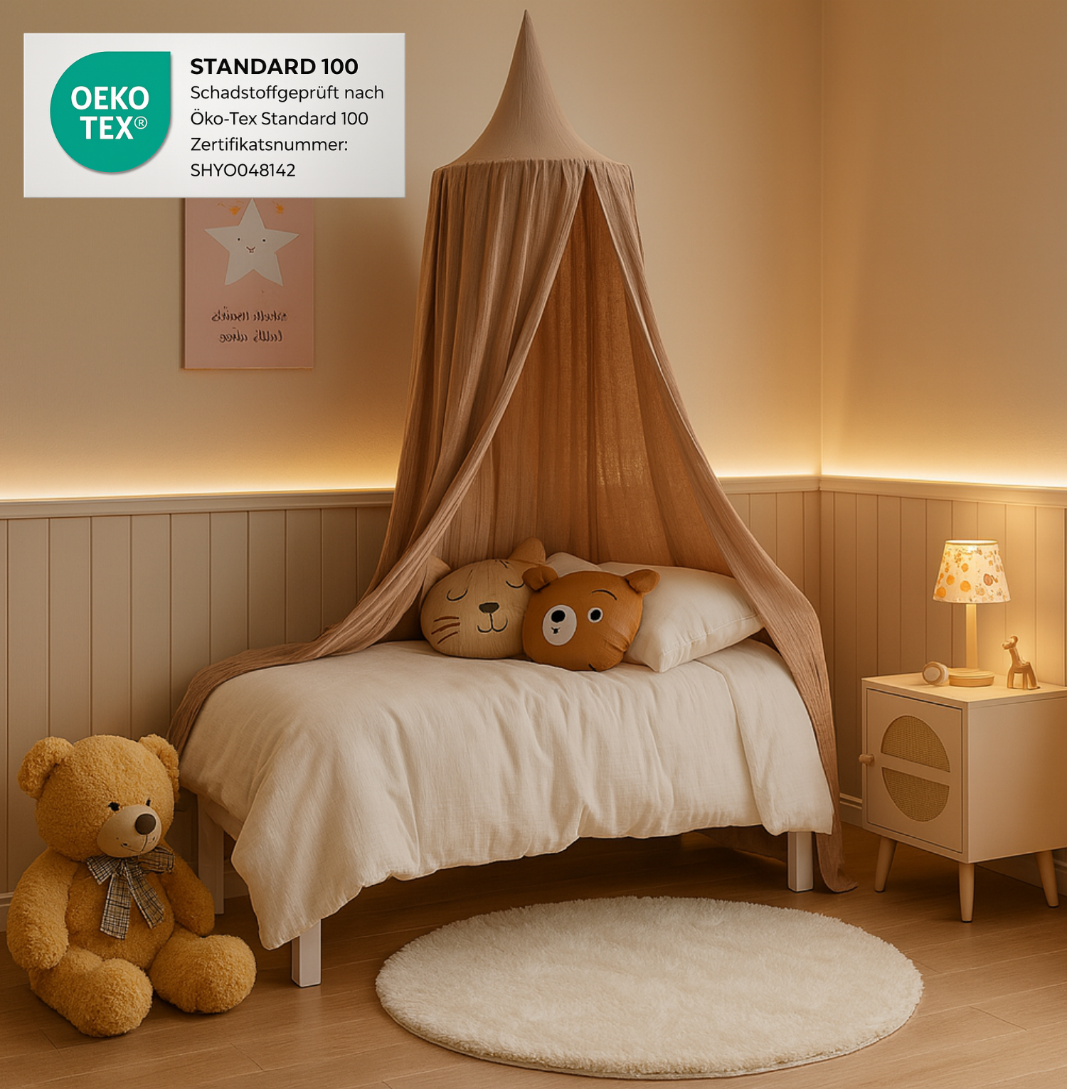 Die einzigartige Musselin-Textur verleiht jedem Kinderzimmer eine gemütliche und stilvolle Note. Ob als Lese- und Spielecke, Versteck oder einfach zur Verschönerung – dieser Baldachin schafft ein magisches Raumgefühl für Ihr Kind. Dank seiner hypoallergenen Eigenschaften ist das zertifizierte Material besonders sanft zur empfindlichen Kinderhaut. Die hochwertige Verarbeitung garantiert eine lange Nutzungsdauer und unbeschwerten Spaß.