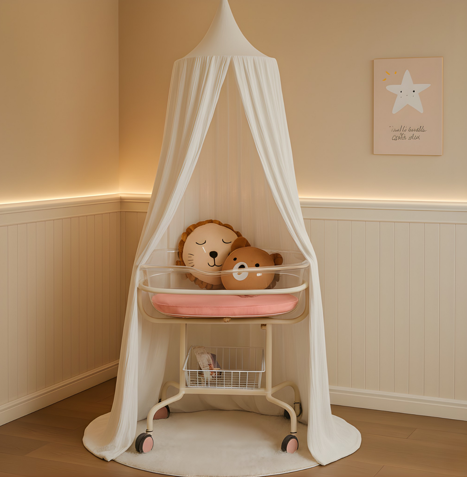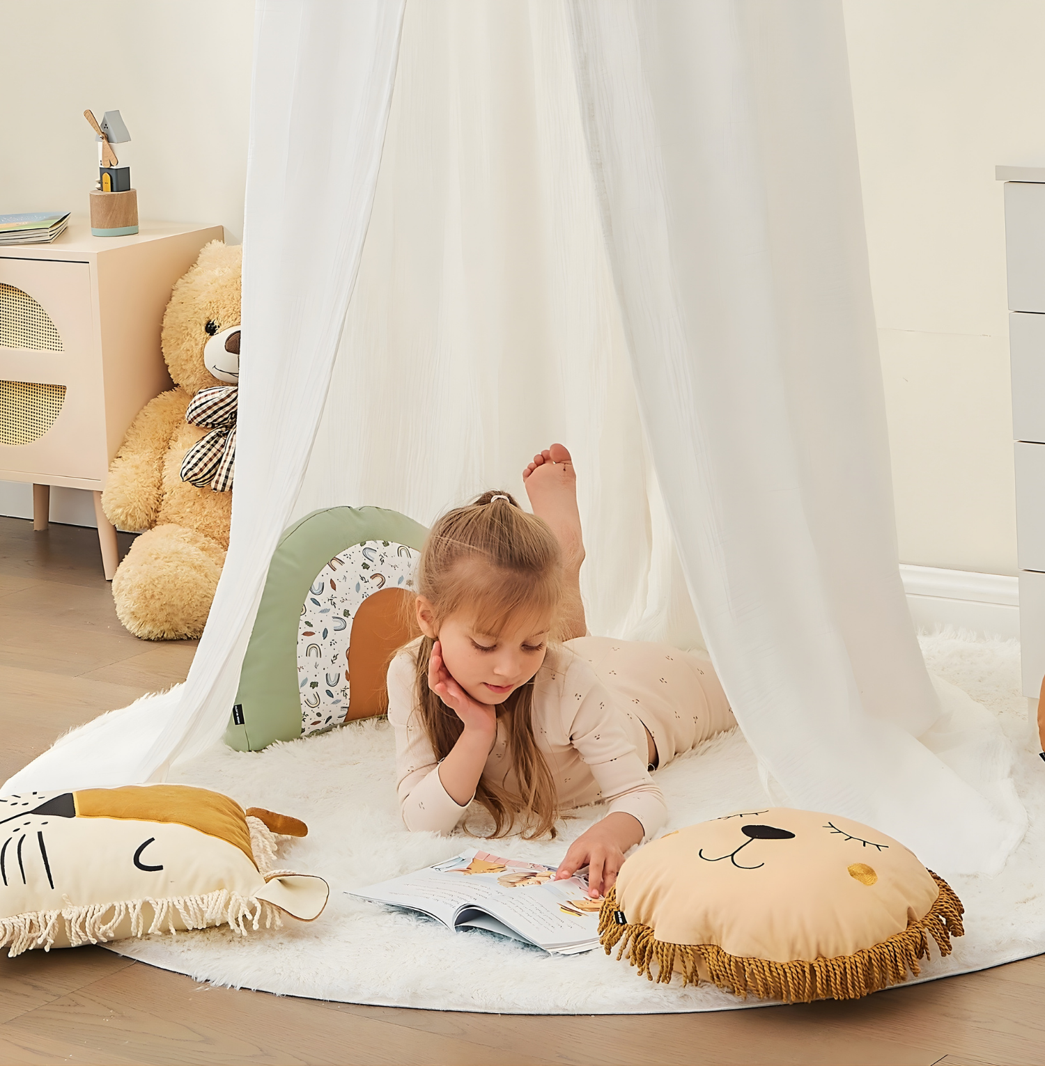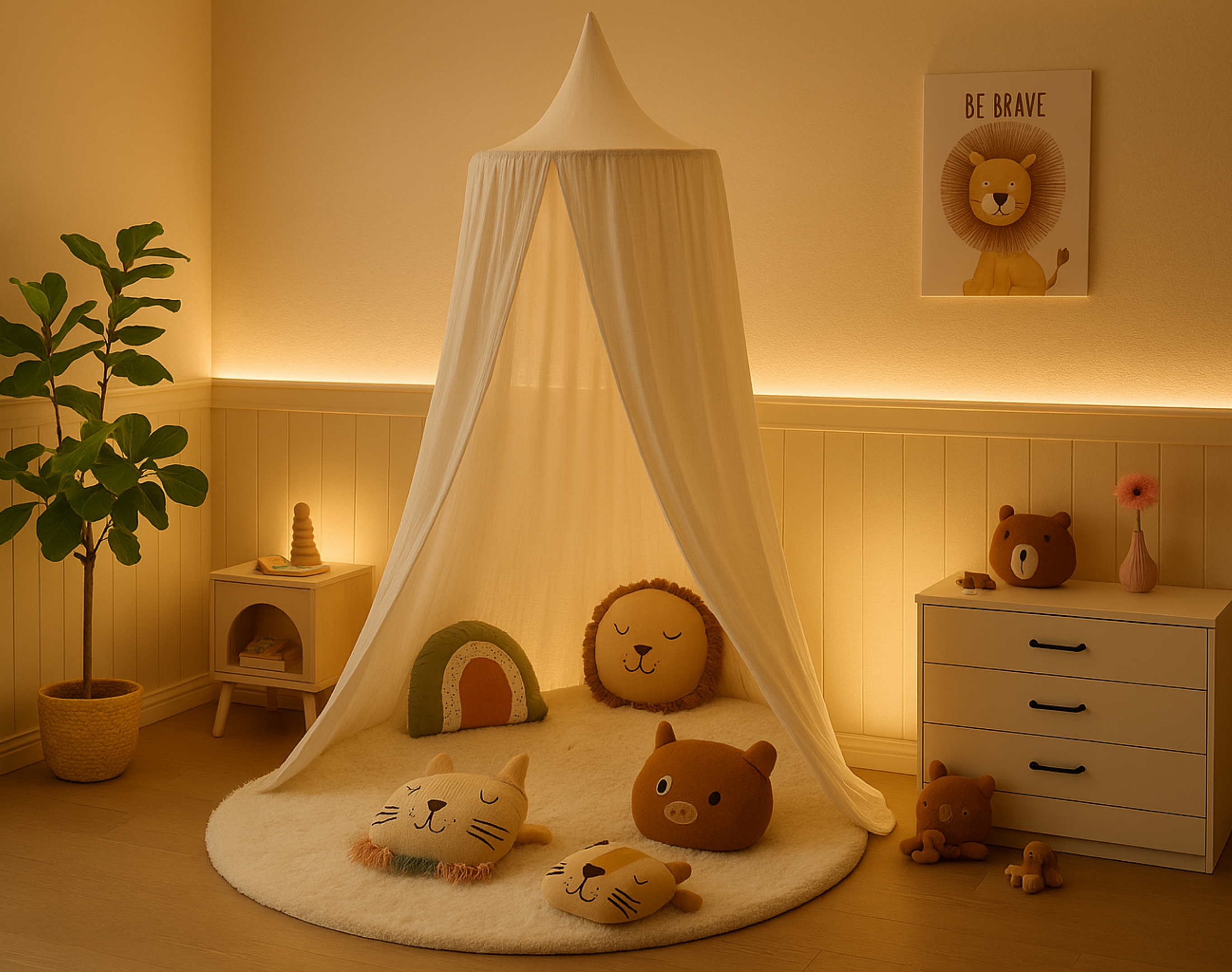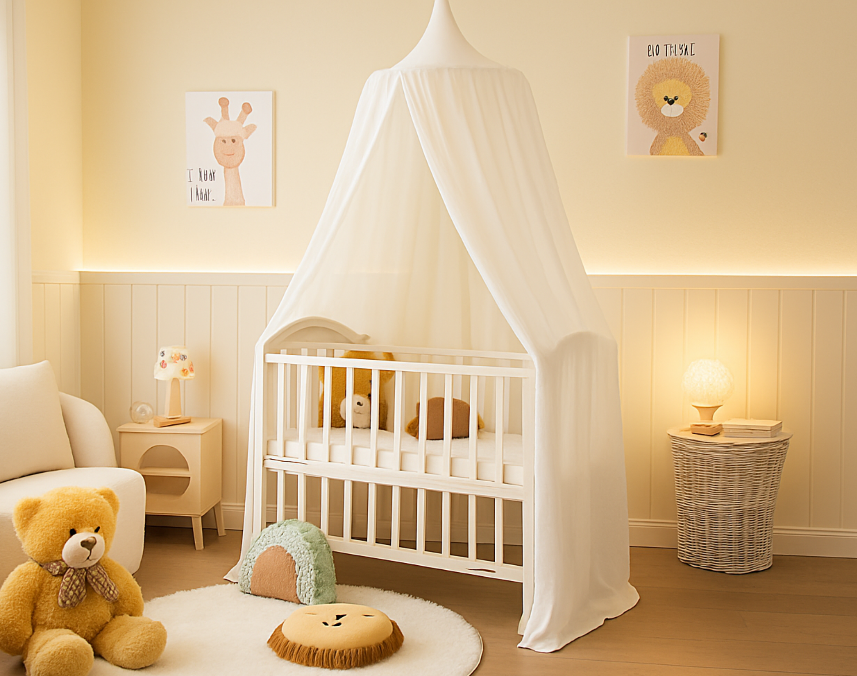 Die einzigartige Musselin-Textur verleiht jedem Kinderzimmer eine gemütliche und stilvolle Note. Ob als Lese- und Spielecke, Versteck oder einfach zur Verschönerung – dieser Baldachin schafft ein magisches Raumgefühl für Ihr Kind. Dank seiner hypoallergenen Eigenschaften ist das zertifizierte Material besonders sanft zur empfindlichen Kinderhaut. Die hochwertige Verarbeitung garantiert eine lange Nutzungsdauer und unbeschwerten Spaß.