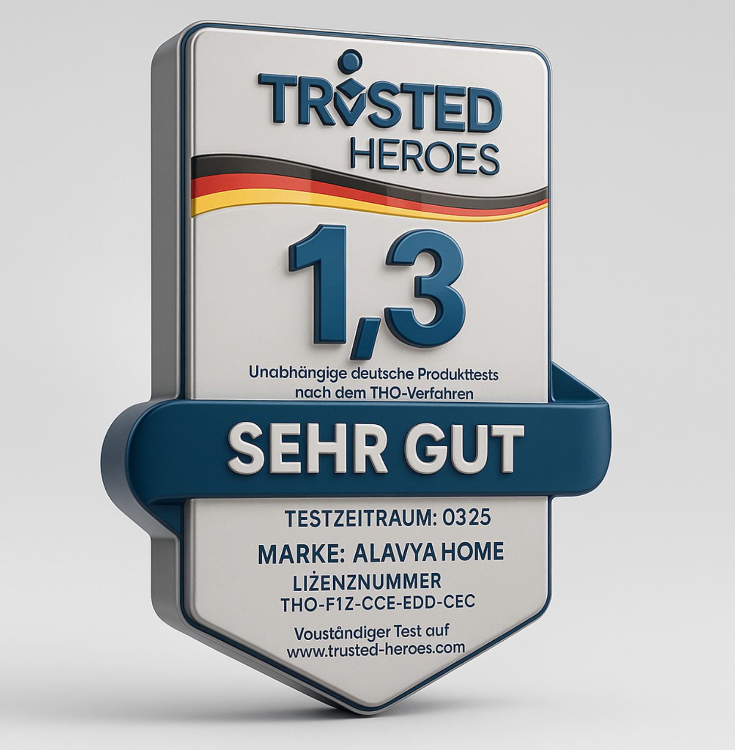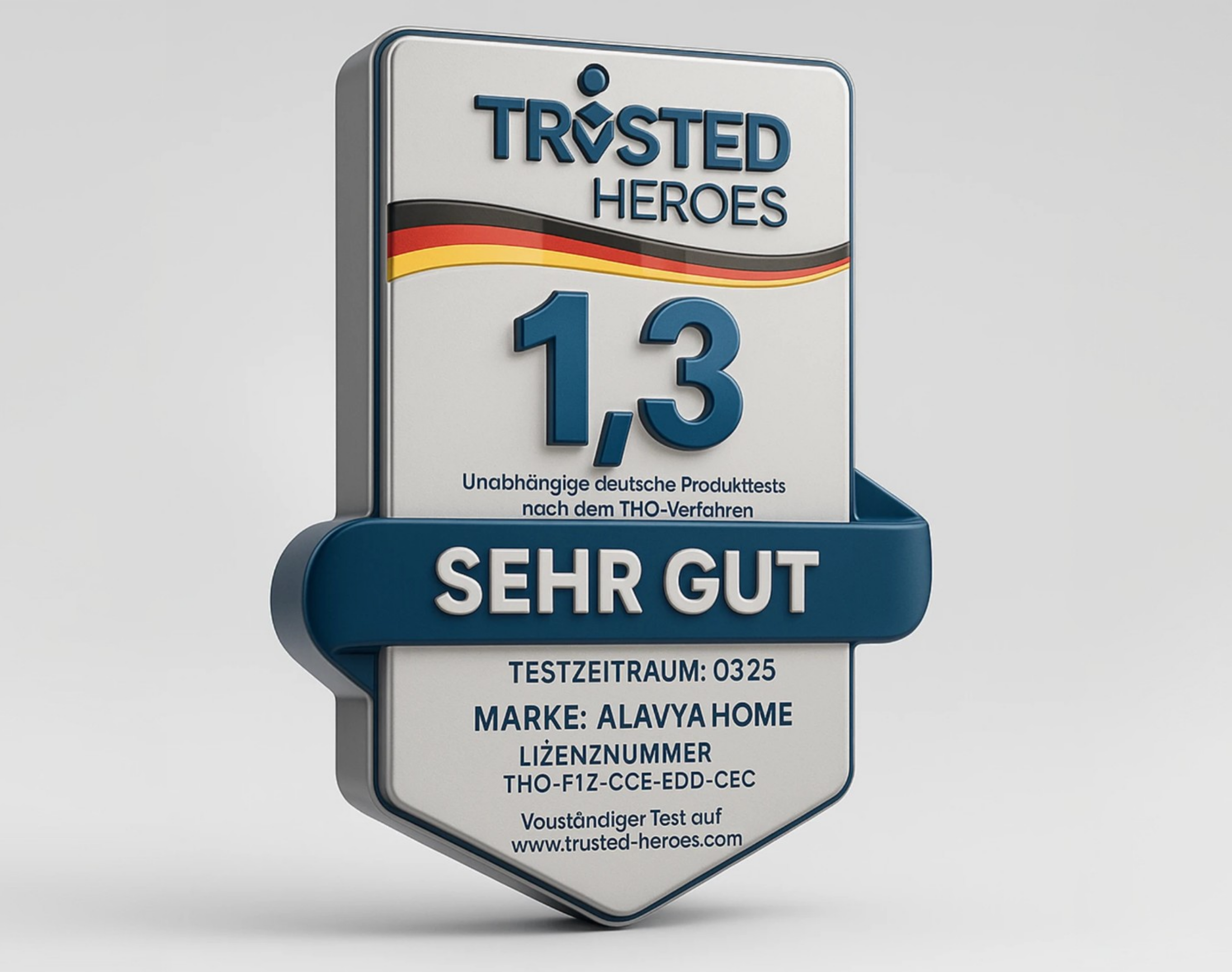 Unser Bodenbett TITAN wurde von Trusted Heroes nach dem strengen THO Bewertungsverfahren mit der herausragenden Gesamtnote 1,3 ausgezeichnet. Der unabhängige Test wurde im März 2025 durchgeführt und ist in der Trusted Heroes Produktdatenbank unter der Lizenznummer THO F12 CCE EDD CCE einsehbar - ein klares Qualitätsversprechen für besorgte Eltern.
