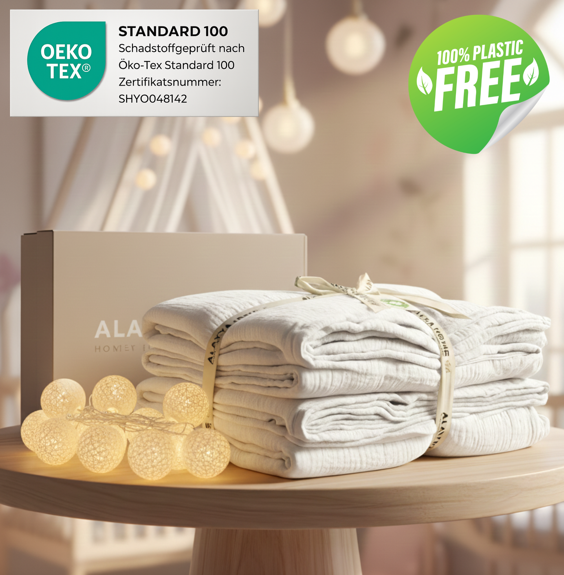 - Material: 100% Bio-Musselin-Baumwolle
