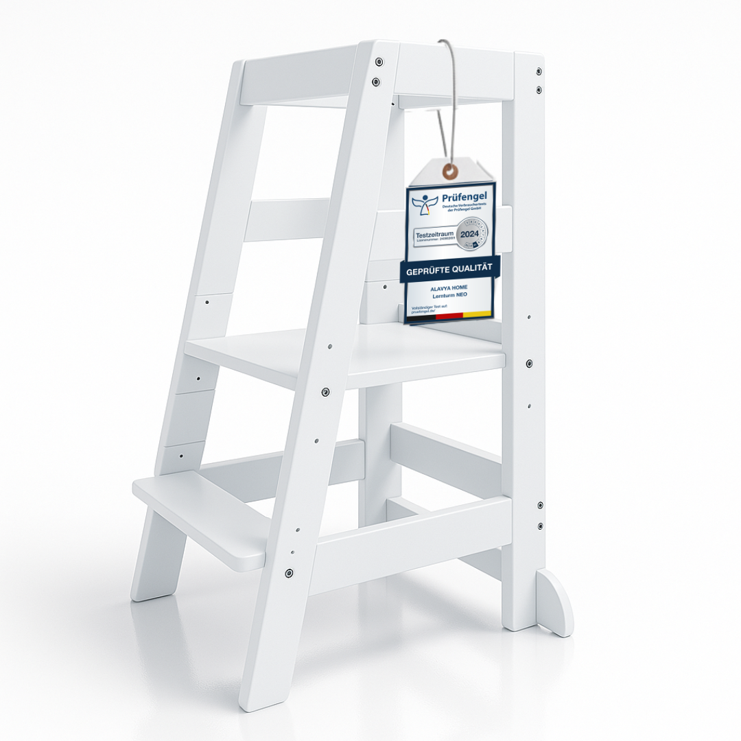 Der NEO Lernturm bringt Ihr Kind auf Augenhöhe – nicht nur körperlich, sondern auch emotional. Ob beim Kochen, Backen oder Zähneputzen. Ihr Kind wird aktiv eingebunden und wächst mit jeder Handlung ein Stück über sich hinaus. Es lernt mit Freude, entdeckt neues und entwickelt spielerisch Selbstvertrauen. So wird jeder Alltag zum lehrreichen Abenteuer voller Nähe, Stolz und gemeinsamer Erinnerungen. Für noch mehr Sicherheit ist der NEO Lernturm mit einem zusätzlichen Kippschutz ausgestattet. Diese durchdachte Verstärkung sorgt für einen besonders stabilen Stand, auch bei bewegungsfreudigen Kindern.